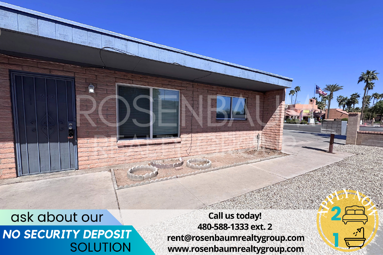 For move in cost and details on our NO SECURITY DEPOSIT option & our Resident Benefit Program, call us today at 480-588-1333 ext. 2 or email us at rent@rosenbaumrealtygroup.com