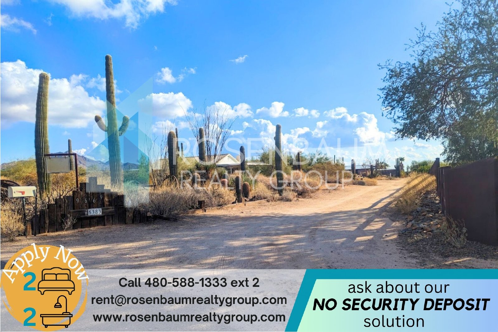 For move in cost and details on our NO SECURITY DEPOSIT option & resident package, call us today at 480-588-1333 ext. 2 or email us at rent@rosenbaumrealtygroup.com