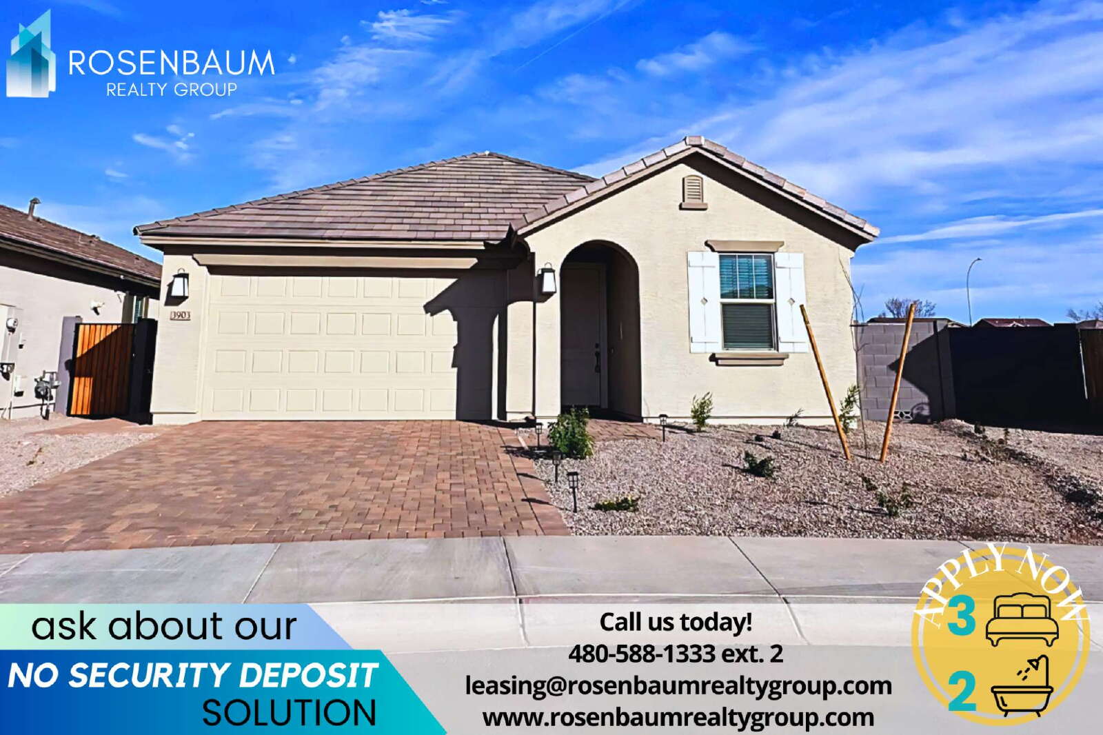 Questions? Call 480-588-1333 ext. 2 or email leasing@rosenbaumrealtygroup.com