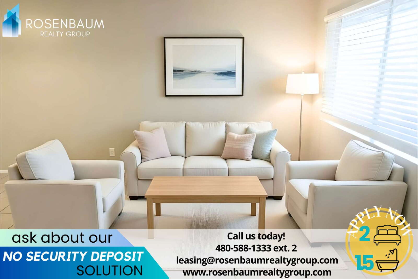 Questions? Call: 480-588-1333 ext. 2 or email: leasing@rosenbaumrealtygroup.com
