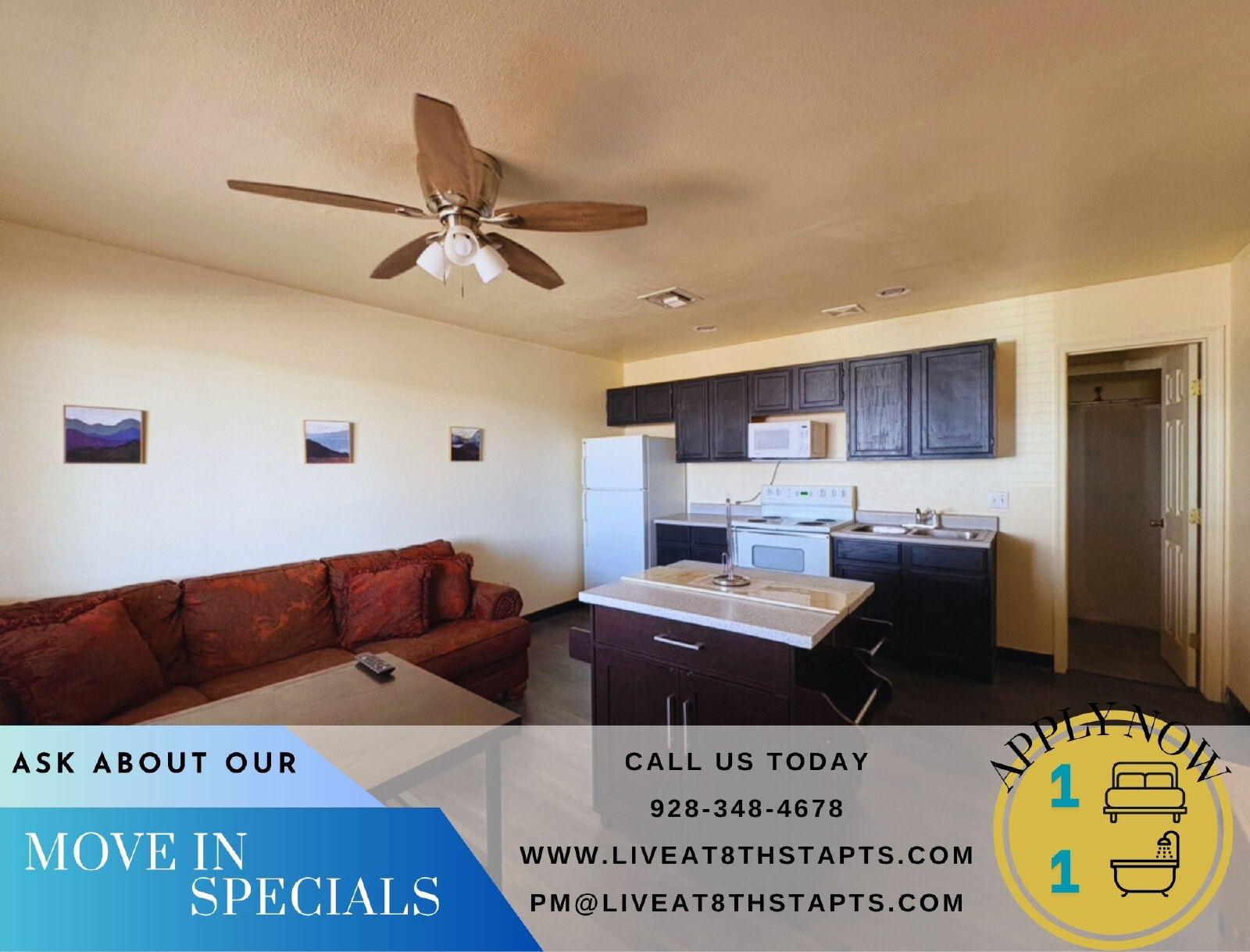 Please take some time to view what we have to offer and fill out an application to get started on renting your own apartment! And don't forget that our tenants receive a 50% off of your membership to 8th Street Fitness!** photos may be of a different unit within the same building +$30 Full Utilities + FREE WIFI